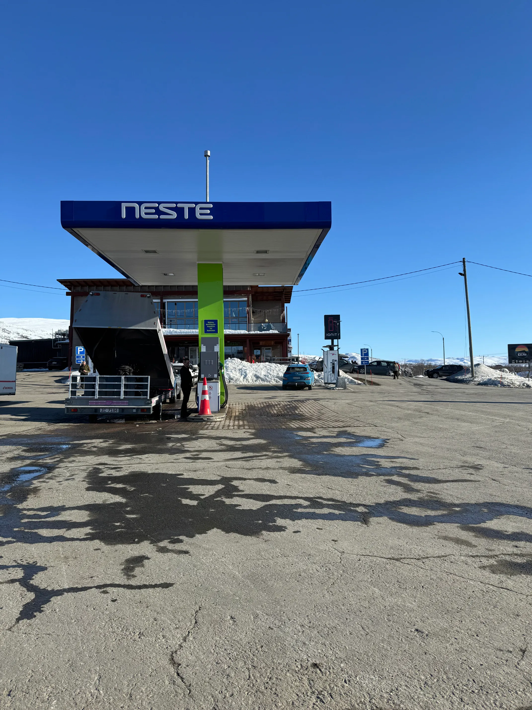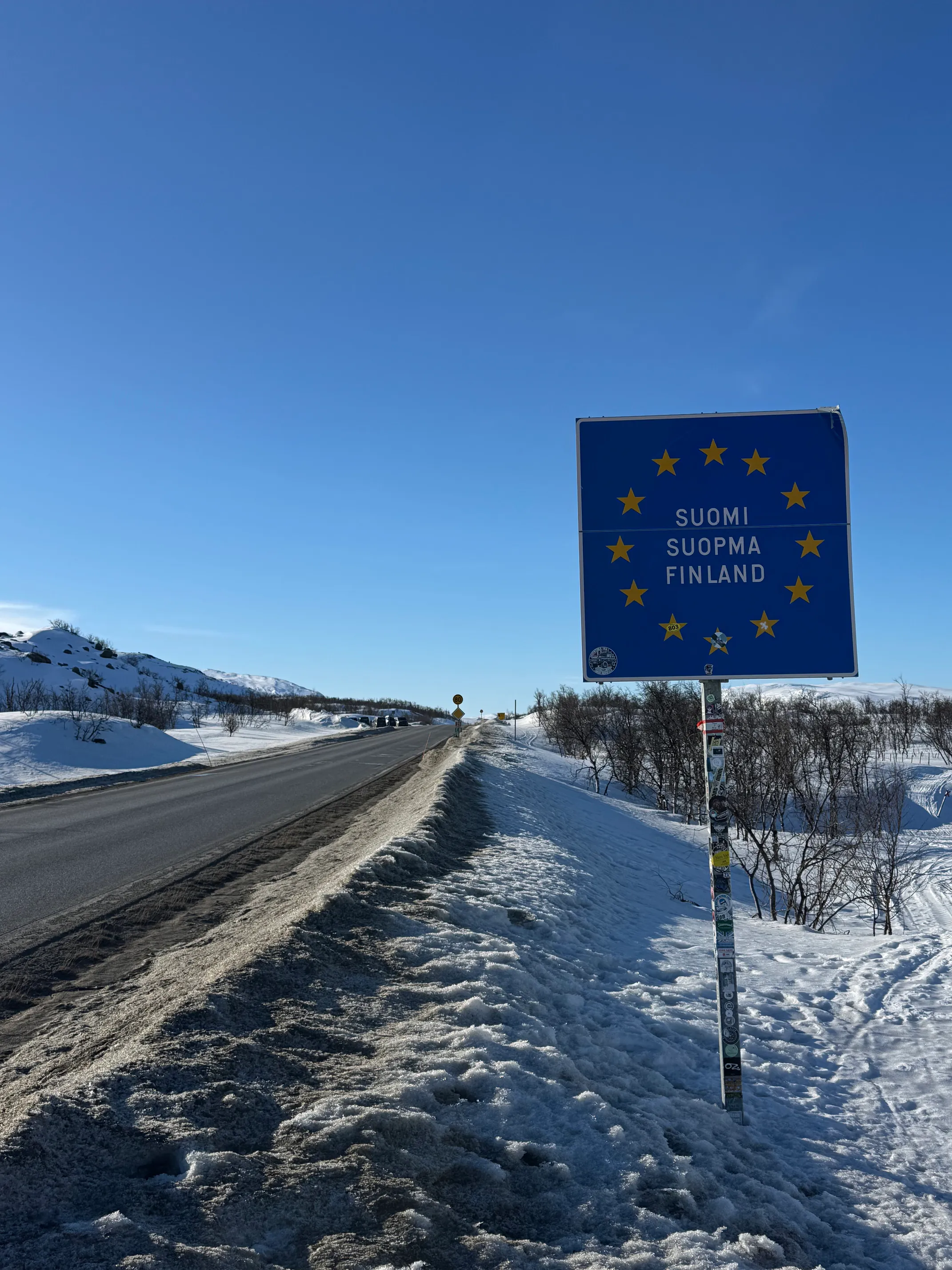 Tilbake i Kilpisjärvi passer jeg på å fylle bensin til leiebilen på riktig side av grensen før jeg kjører tilbake til gjestehuset i Helligskogen.