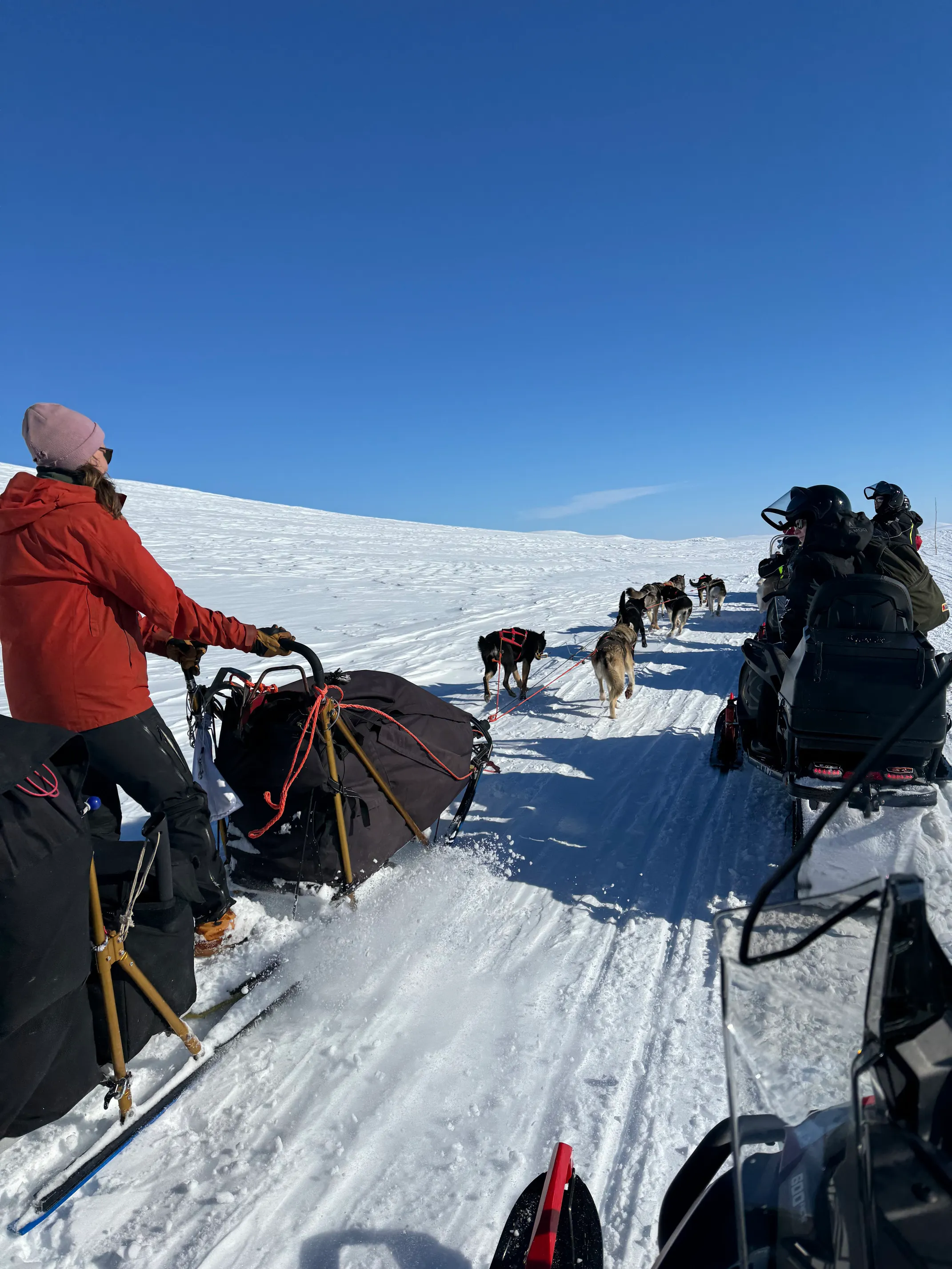 Det er disse doningene som skal frakte oss fra Kilpisjärvi og opp til Halti. Kilpisjärvi ligger ca. 500 moh, som betyr at ca. 800 meter skal klatres over ca. 50 km i distanse. Turen til toppen tar ca. 3 timer med mye pauser underveis for å nyte utsikten.