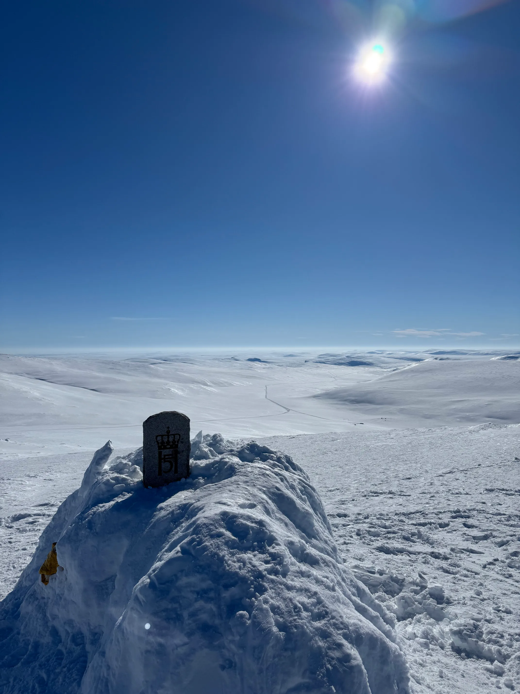 Med litt mer “klatring” er Finland høyeste punkt på 1324 meter over havet besteget! Som dere ser er grensemarkeringen bokstavelig talt på varden til toppen.
