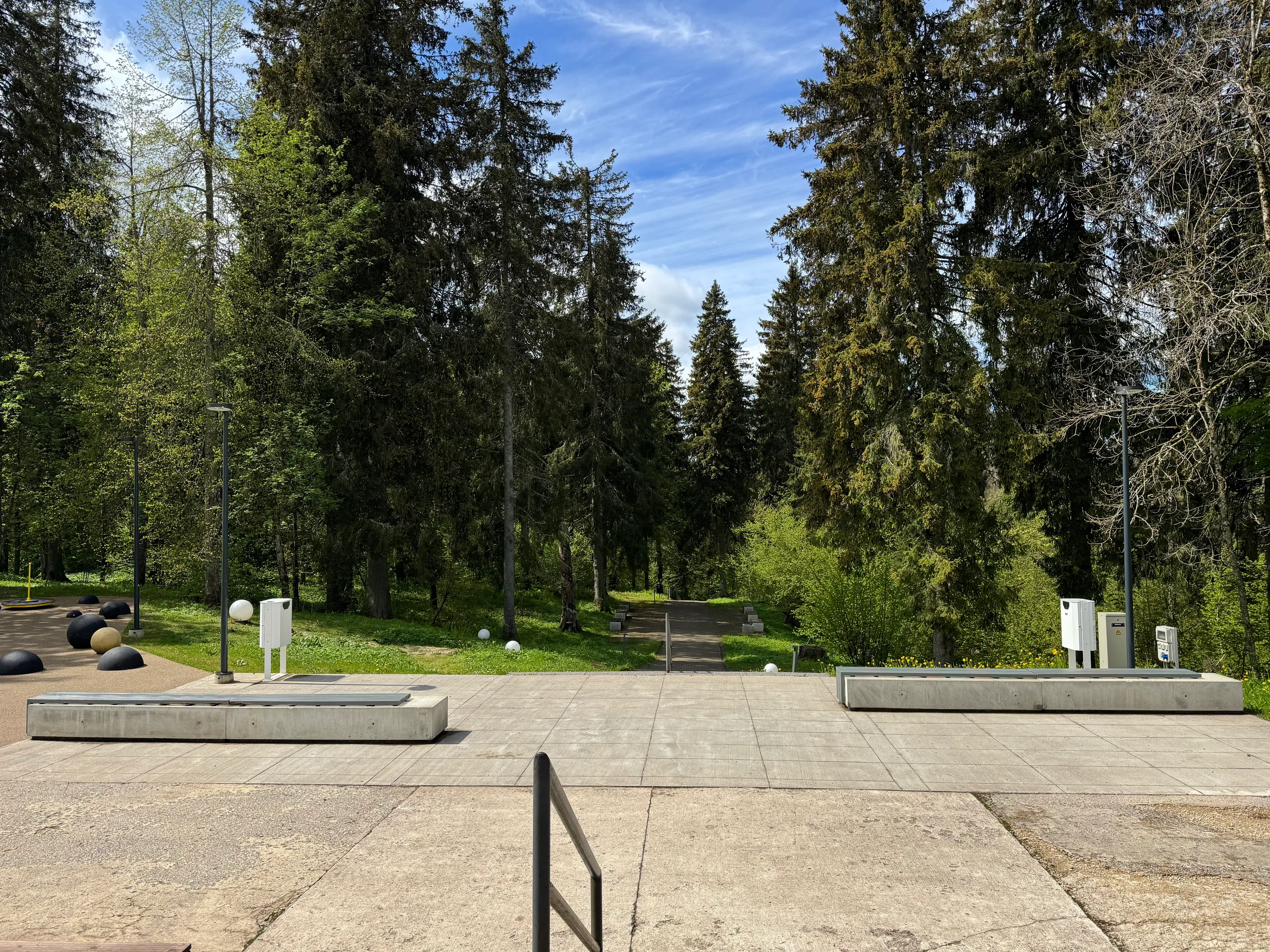 Og etter 10 minutter kjøring finner jeg meg ved foten av toppen. En liten fun fact er at “Suur Munamägi” oversettes til “Stort egg fjell”, navnet har det fått fordi fjellet ser ut som et egg. Jeg lurte på hvorfor det var så mange små statuer av egg overalt ved toppen.